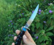 典藏世家秋水雨滴纹大马士革手工猎刀