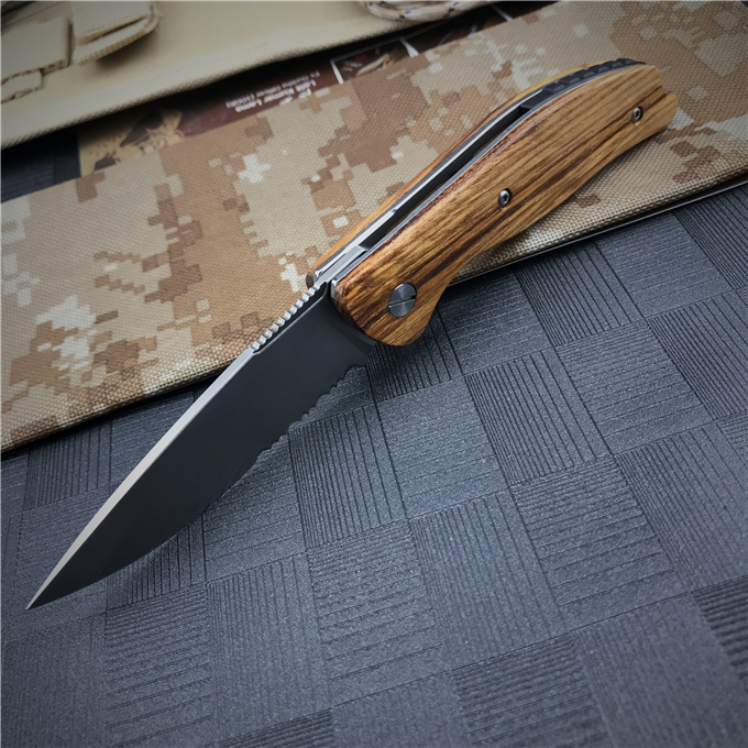 代工版熊头1810S折刀 类型:轴承快开 总长:195mm 刃长:88mm 刀刃:D2(假一罚十) HRC:60±1o 刃厚:3.0mm 手柄内衬:2.0mm不锈钢减重内片 手柄:进口斑马木 重量:97g