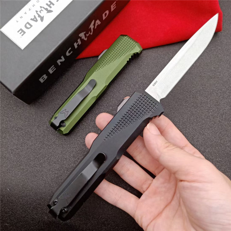 蝴蝶4600直出跳刀 全长:205mm 刃长:85mm 柄长:118mm 刃宽:1.5cm 刃厚:3mm 表面:石洗 刃材:s30V 柄材:6061T6铝合金+阳极氧化 硬度:59-60 (超高硬度,非常锋利) 净重:90g 重量:155g(含包装) 附件:原装黑彩盒,说明书,绒布袋 整刀用CNC,电脑锣,线切割制作而成,手工,精密度非常高,很值得收藏的一把刀