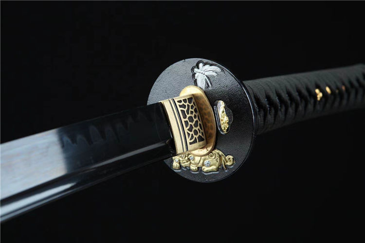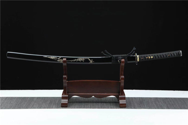 黑翼武士刀 工艺:龙泉古法传统手工艺 装具:铁装 刃材:1095钢烧刃发黑 柄材:实木绕绳柄 鞘材:实木漆鞘 赠品:精美锦盒、养护油、布