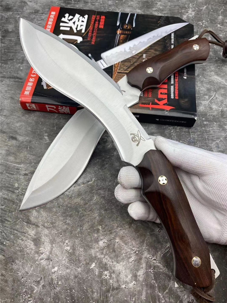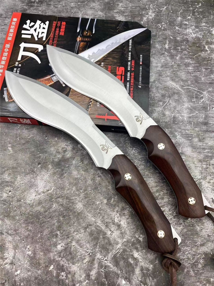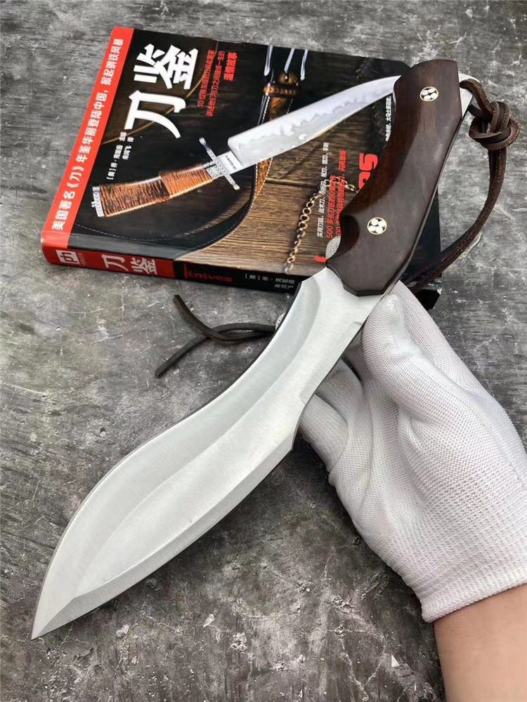 天赐狗腿弯刀 全长:32CM 刃长:19CM 柄长:13CM 刃厚:0.5CM 重:460克 刃材:8cr13 硬度:60