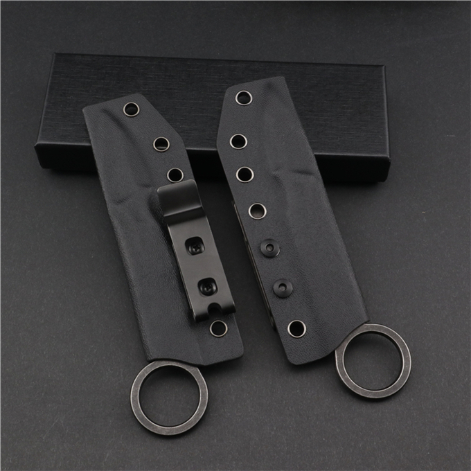 巴斯蒂内利黑桃手刺 总长:146mm 刃长:46mm 刃厚度:3.8mm 刃宽:19mm 刀片材质:440C 刀片表面处理:黑色石洗 硬度:59-60HRC 刀套:K鞘 净重:45g 毛重:119g 包装:黑色礼盒