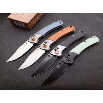 新版蝴蝶15080折刀 全长:236mm 刃长:101mm 刃材:9cr18mov 硬度:58-60HRC 表面:镀钛+G10 刃厚:3.2mm 柄材:G10?,420J2内衬? 锁型:轴锁 重量:154g 包装:彩盒