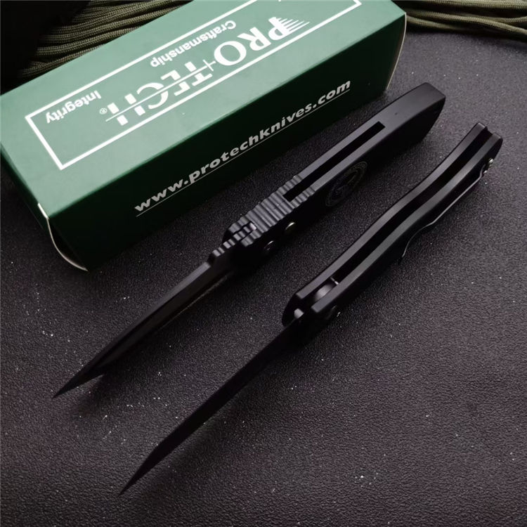 超技术CQC7战术侧开跳刀 型号:CQC7 类型:侧跳刀 全长:201mm 刃厚:3mm 刃长:83mm 柄长:118mm 刃材:154-CM深冷热处理,表面镀钛拉丝 硬度:59-60HRC 柄材及处理:6061-T6太空铝,全CNC加工 背夹:420J钢 包装:原装彩盒