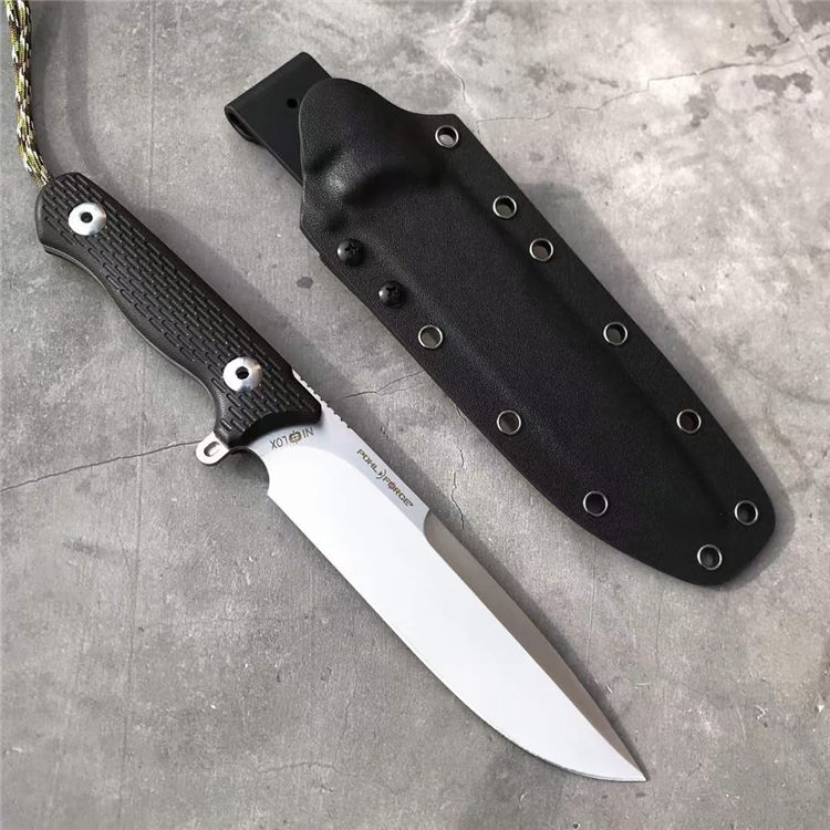 波尔武力MK4战斗刀 总长:270mm 刃长:140mm 厚度:4mm 重量:512克 刃钢:Niolox 表面:缎面 柄材:G-10 护套:Kydex带有携带系统包括 配件:Kydex护套,带有携带系统,挂绳