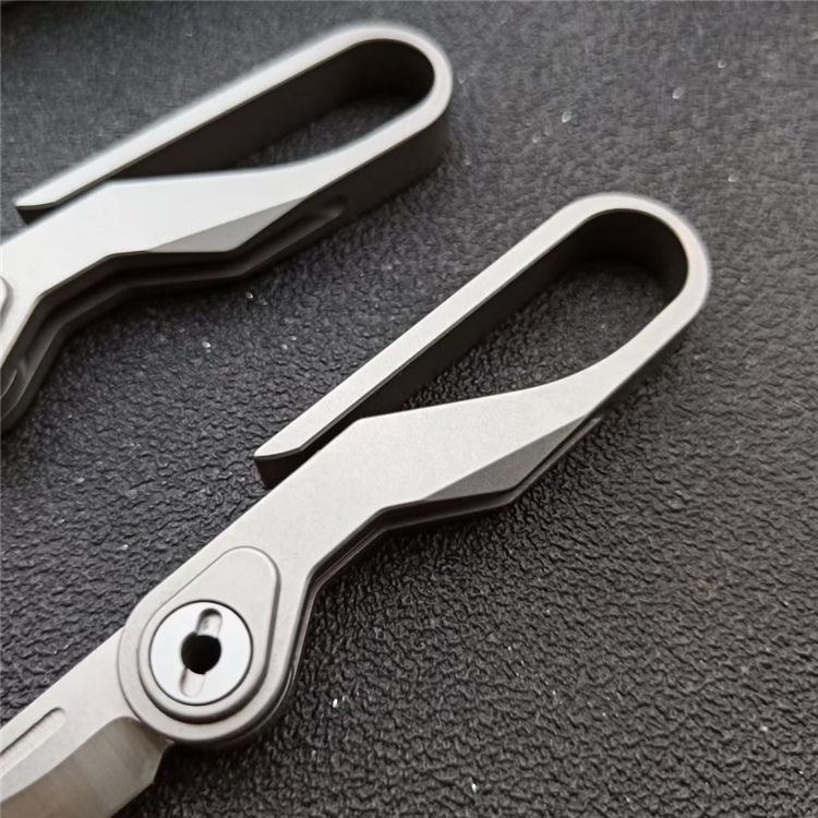 M390钢TC4钛钥匙扣折刀 刃材:M390粉末钢 全长:8.3cm 闭合:5.8cm 刃长:2.5cm 刃厚:1.9mm 柄厚:7.0MM 净重:15.5克 硬度:60HRC 表面:是砂光+石洗 柄材:是美国TC4钛合金,采用定位珠,无锁定机制 备注:配送精美铁盒