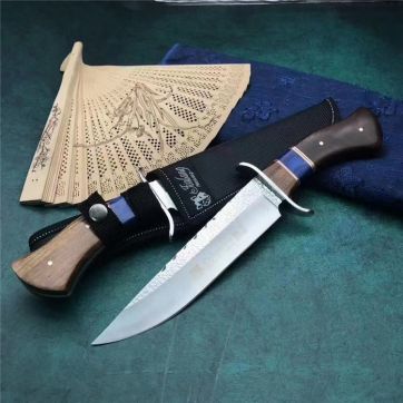 哥伦比亚SA81直刀 类型:直刀 全长:31cm 刃长:18cm 刃宽:3.9cm(最宽处) 刃厚:3.8mm 柄长:12cm 表面:锻打纹+砂光拉丝 刃材:3CR13 硬度:57HRC 柄材:钢头+进口彩木 重量:373克(含包装) 包装:尼龙套