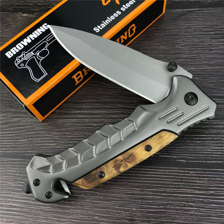 勃郎宁蛇鳞折刀 全长:23CM 刃长:9CM 刃材:5CR13MOV 刃宽: 3CM 刃厚:4MM 柄长:11.8CM 柄材:不锈钢+白影木 重量:233G