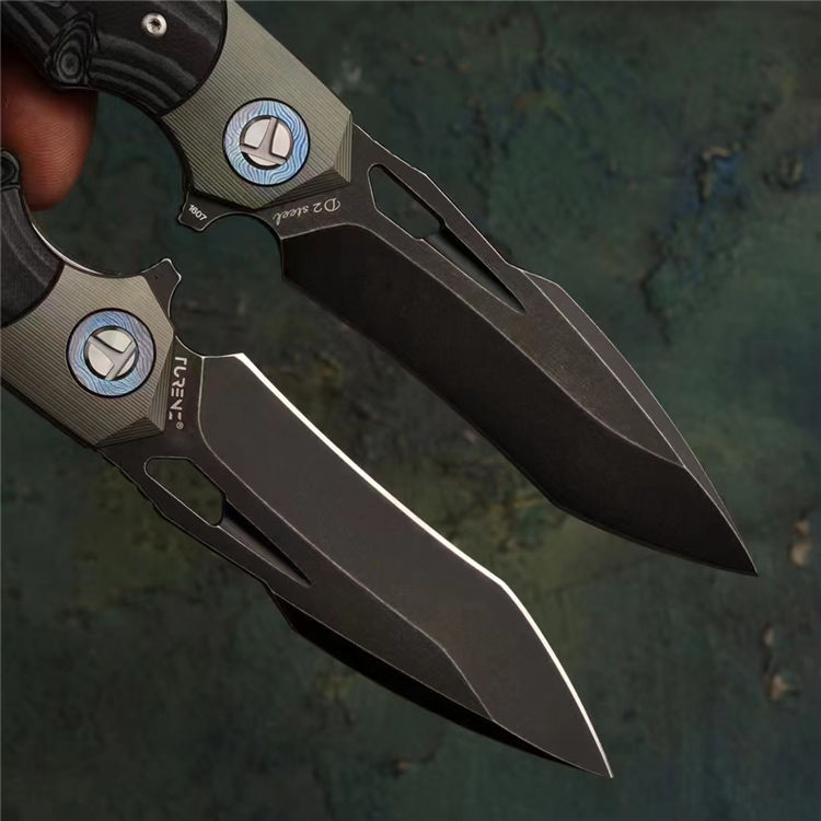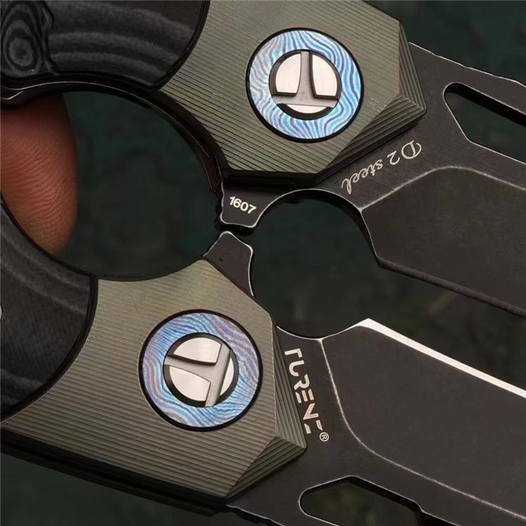 柄材:钛大马垫圈+TC4钛合金复古工艺绿+双色G10手工雕刻