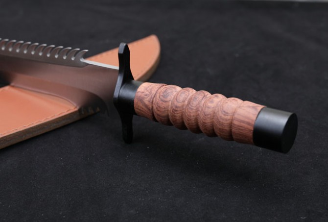 柄材:钢头护手+防滑酸枝木柄,刀背带齿