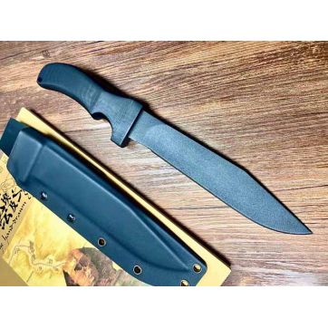 新款6.5厚疯狗直刀 全长:320mm有效刃长:165mm刃厚:6.5材料:三刃热处理O1钢表面:涂层特氟龙防刮涂层,一体龙骨硬度:60-61柄材:搭配黑色G10配:2.0厚板进口K鞘带钢夹刃材性能啥的这个不用多说了,使劲操就行,一把好刀