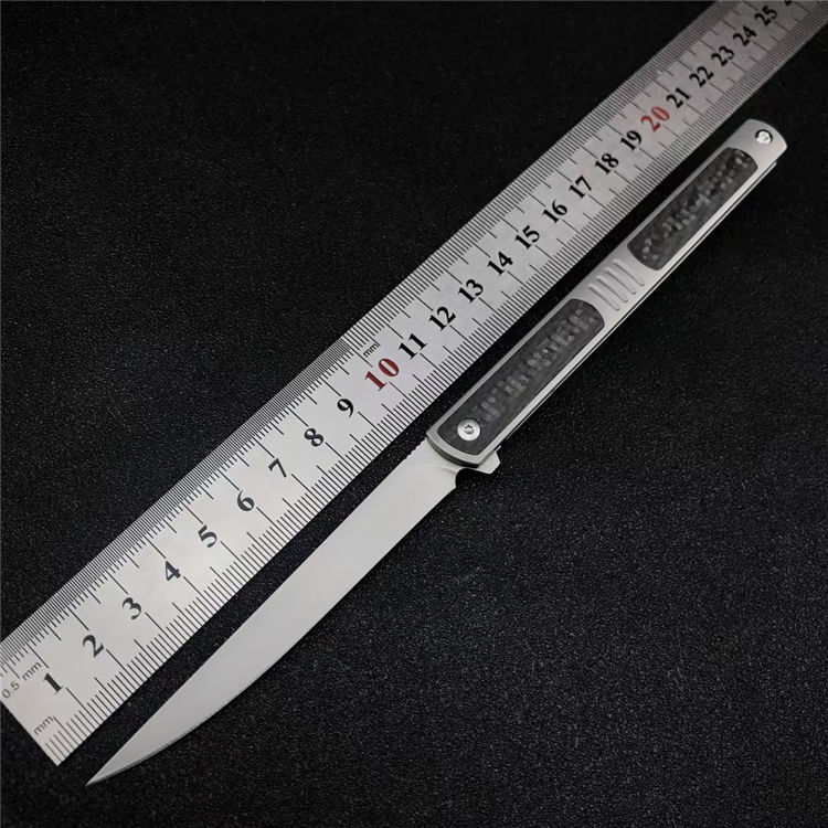 神仙笔折刀 全长:20.5CM 刃长:9.3CM 刃宽:1.1CM 刃材:S90V 硬度:60 刃厚:3MM 柄长:11.2CM 柄材:钛合金+碳钎维 重量:96G 包装:碳纤纹编制袋