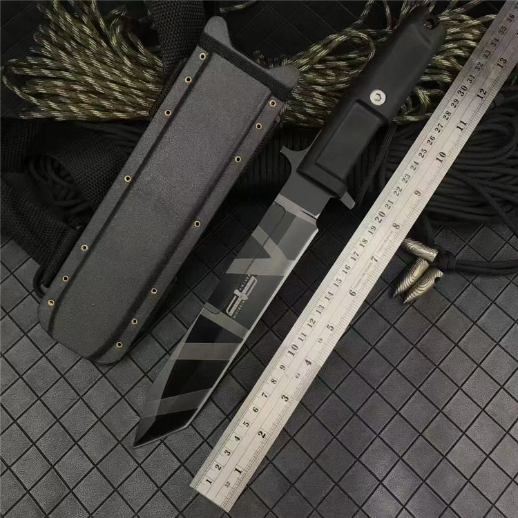 复刻RATIO极端武力直刀 全长:32.5CM 刃长:17.5CM 刃厚:0.5CM 刃宽:3.3CM 刀材:D2 硬度:58HRC 柄材:热塑性弹性橡胶 刀鞘:黑色K鞘 重量:365克 备注:黄色纸盒