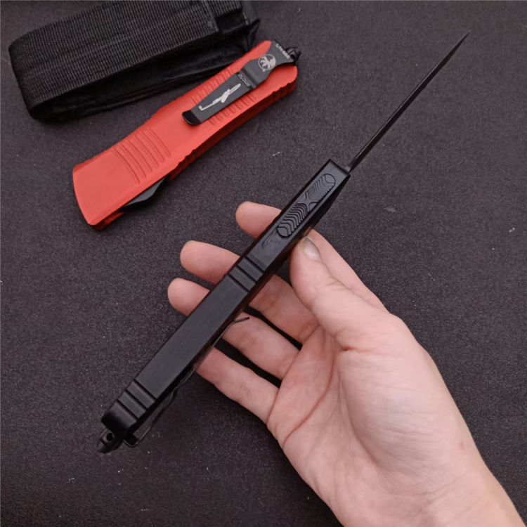 微技术爪标大龙直出跳刀 全长:24CM 刃长:9.6CM 刃厚:0.31CM 刃宽:2.1 CM 柄长: 14.4C 柄宽:2.8CM 柄厚:1.3CM 刃材: D2 柄材:航空铝 重量:160g 配拆卸工具