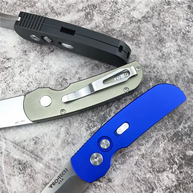 超技术2203迷你侧开跳刀 全长:13.8cm 刃长:5.2cm 刃厚:3.0mm 柄长:9cm 柄材:T6-6061(航空铝) 配件:彩色超技术包装盒