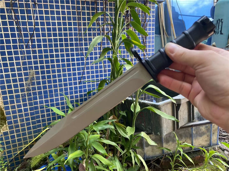 复刻版06军刺 类型:军刀 材质:1095高碳钢 硬度: 58HRC 全长:36.5cm 刃长. 25cm 柄长: 11.2cm 厚度:0.5cm 宽度:3.5cm 表面:灰钛 配:皮革套 产地:中国