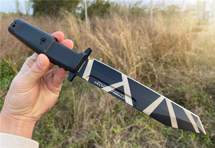 外贸版极端武力支点直刀 全长:310MM 柄长:130MM 刃厚:6MM 刃宽:32.5MM 最宽:54.5MM 材质:进口N690钢 硬度:58-60HRC 热处理:专业真空深冷油淬 结构:一体龙骨设计 净重:约282G 手柄:克拉通手柄有两种颜色选择(沙漠色和黑色) 刀鞘:配高品质尼龙袋鞘内带ABS硬固定鞘锁定 包装:高品质手工盒子配说明书,签名标签