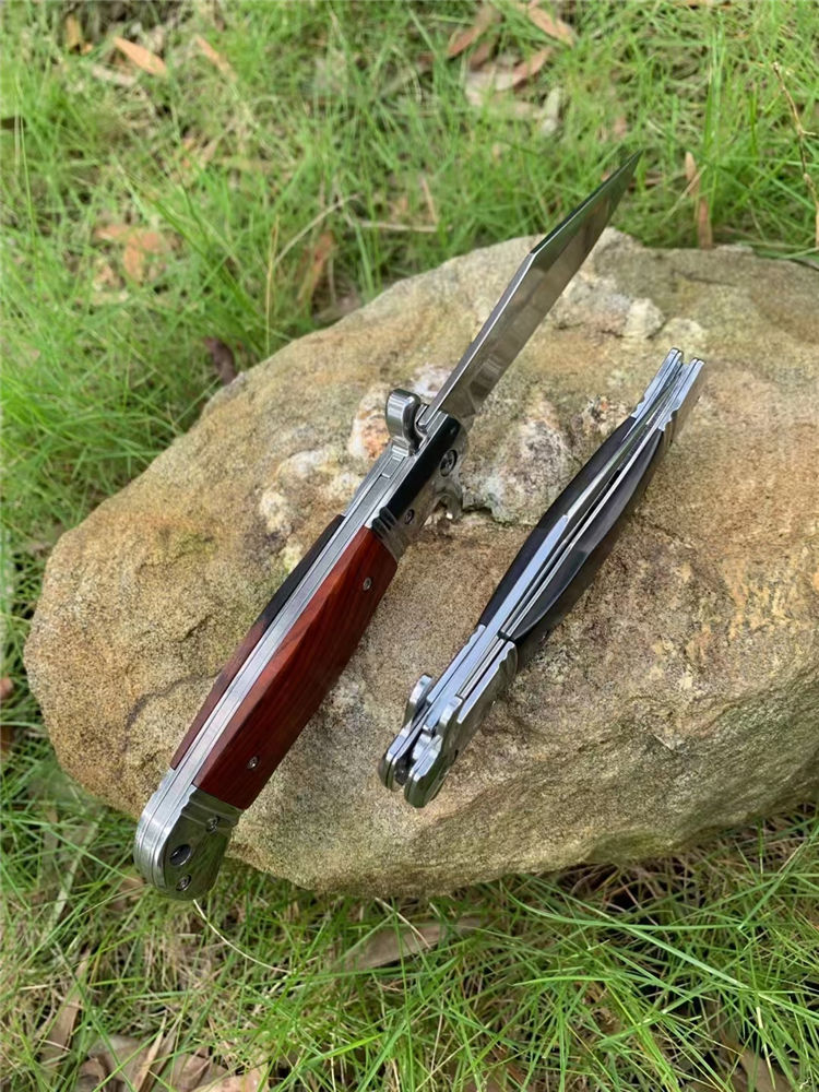教父西西里10寸檀木AKC侧开跳刀 全长:23cm 刃长:10.3cm 柄长:12.7cm 刃宽:2.1cm 厚度:0.3mm 材质:440C 表面处理:镜面光 硬度:56-58HRC 手柄:黄檀木/黑檀木 包装:尼龙套+盒子 重量:157g/180g(包含包装)GT-AKC10-2
