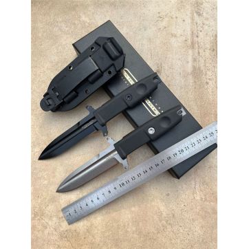 极端武力防御者直刀 全长:23.5cm 刃长:11.5cm 厚度:5cm 钢材:D2 全刀重量非常轻盈,握感非常舒适,在战术刀里,它也属于迷你型小尺寸,让你携带非常隐秘而轻便,刀鞘战术K鞘