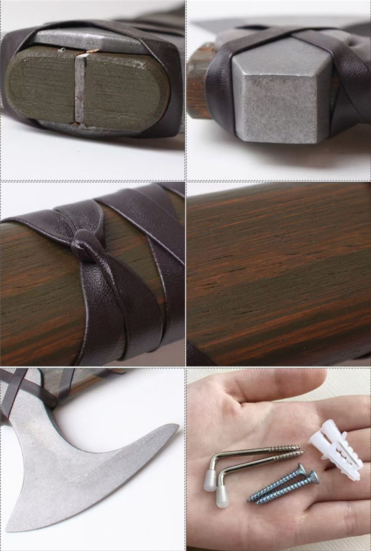 战神拉格纳战斧 全长:62.5cm 斧刃:15cm 重量:1.4kg 《维京传奇》战神拉格纳战斧,影视收藏破拆战斧,不锈钢精铸斧头,实木缠皮带展示