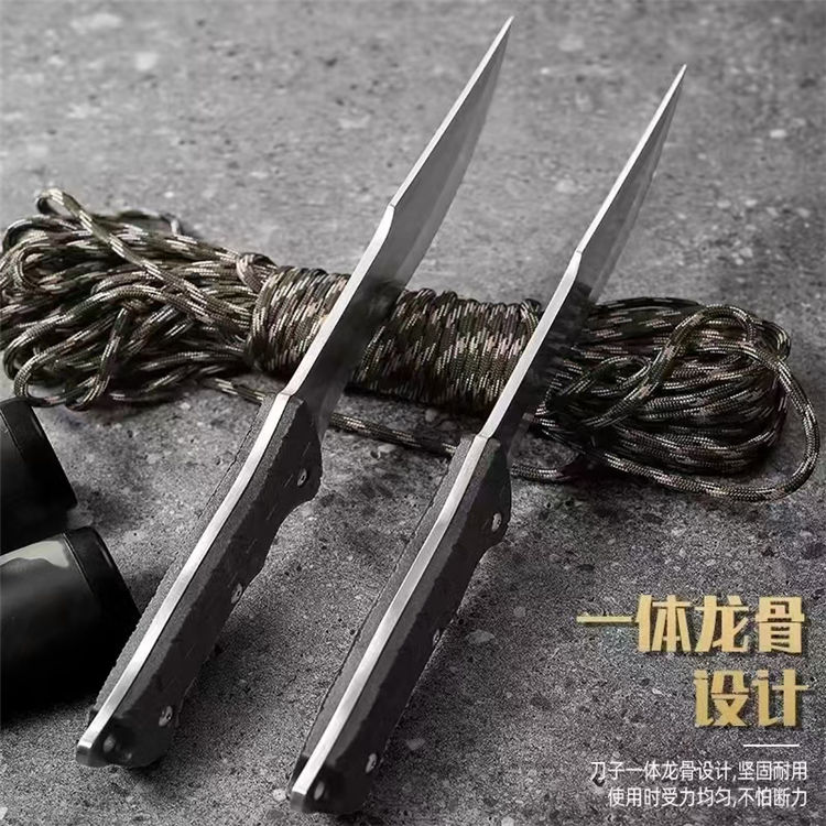 哥伦比亚野狼直刀 全长:30mm 刃长:17mm 柄长:120mm 刃宽:39mm 刃厚:4mm 刃材:7CR13Mov 重量:275克 硬度:59HRC 表面:砂光拉丝处理 柄材:G10防滑手柄 附件:尼龙刀套