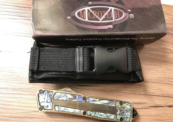 单锋全刃圣甲虫-鲍鱼壳珍藏版(金色) 开启长度:22CM 合起长度:13.5CM 刃 厚:0.3CM 硬 度:57 HRC 刃 材:440c 表 面:发黑 把 手:航空铝合金+鲍鱼壳 净 重:220克(整刀) 毛 重:300克(含包装物) 开 合:双动作,直推开关,自动弹出和收回(刀头比较牢固,只有很轻微的摇动) 包 装:耐磨专用战术尼龙套。 口袋刀夹:弹簧刀夹玻璃敲击器:钨质玻璃敲击器