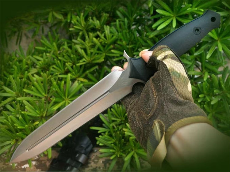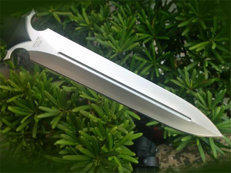 博尔特冰锋直刀 全长:367mm 刃长:227mm 柄长:140mm 刃最宽:40mm 刃厚:6mm 刃面处理:精细幼砂光钢本色 类型:以锋利度,耐磨韧性保持度最出色 开刃方式:二次开刃 刃材:DC53钢 热处理:真空油淬,2次回火处理,使钢材韧性保持性更佳 硬度:60HRC 柄材:黑色G10+对锁螺丝,一体全柄,握感更舒服,性能更强悍 净重:450克 刀鞘:配K鞘+皮带扣 包装附件:配送护刀油+刀绳