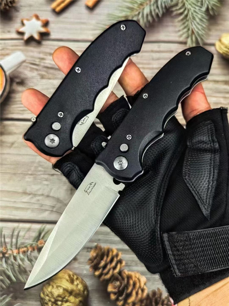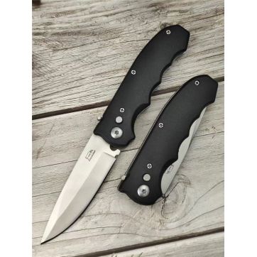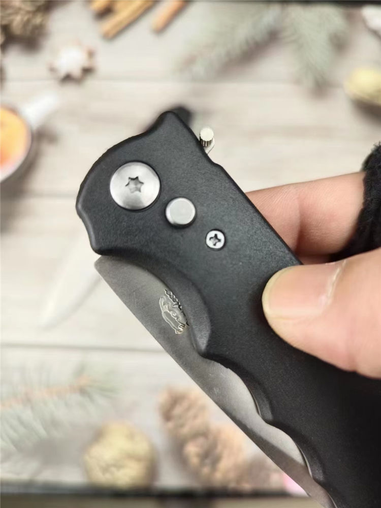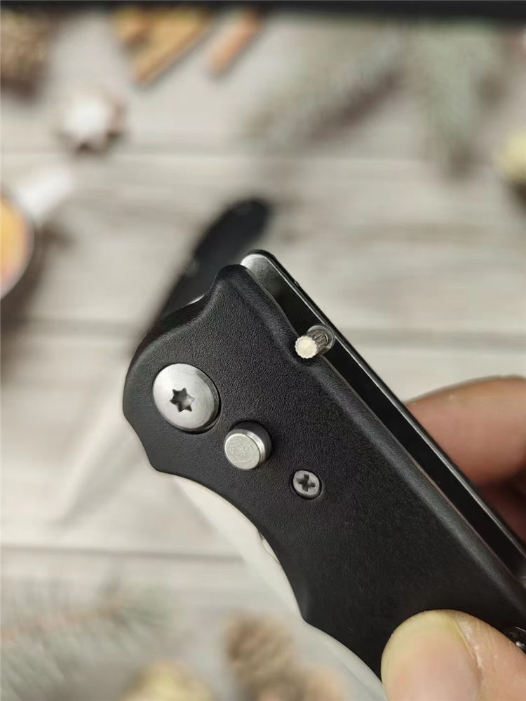猞猁侧开跳刀 全长:210mm 刃长:90mm 柄长:115m 刃宽:26mm最宽处 刃厚:2.2mm 刃材:440c高温热处理 刀重:120g 毛重:128g(含包装盒) 硬度:58HRC 表面:砂光 柄材:ABS玻纤+钢片 结构:按钮式制动快开 锁型:滑动防开功能 包装:纸盒
