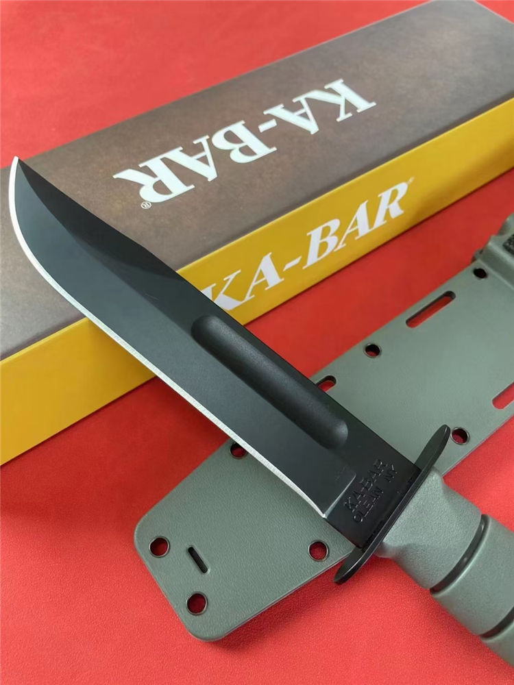 复刻版卡巴5011直刀 全长:30CM 刃长:17.5CM 柄长:12.5CM 刃厚:0.4CM 刃宽:3.2CM 刀重:309.6g/443.5g含鞘 毛重:630g含包装 刃材:1095 Cro Van 碳钢 表面:黑色环氧涂层 硬度:60-61HRC 柄材:Zytel 刀鞘:Kydex鞘 包装:高档彩盒