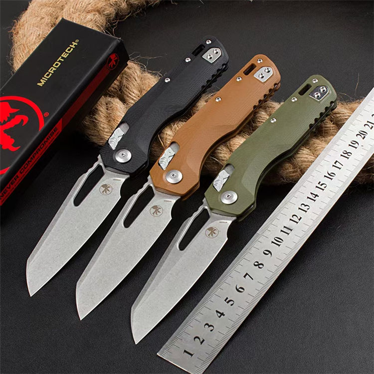 微技术MSI战术折刀 全长:222mm 刃长:87mm 柄长:125mm 钢材:M390MK钢 柄材:G10柄(黑色-绿色-沙漠色) 刀厚:3mm 刃宽:30mm 硬度:60-61HRC 表面:石洗 净重:142g 毛重:180g 包装:原装礼品盒