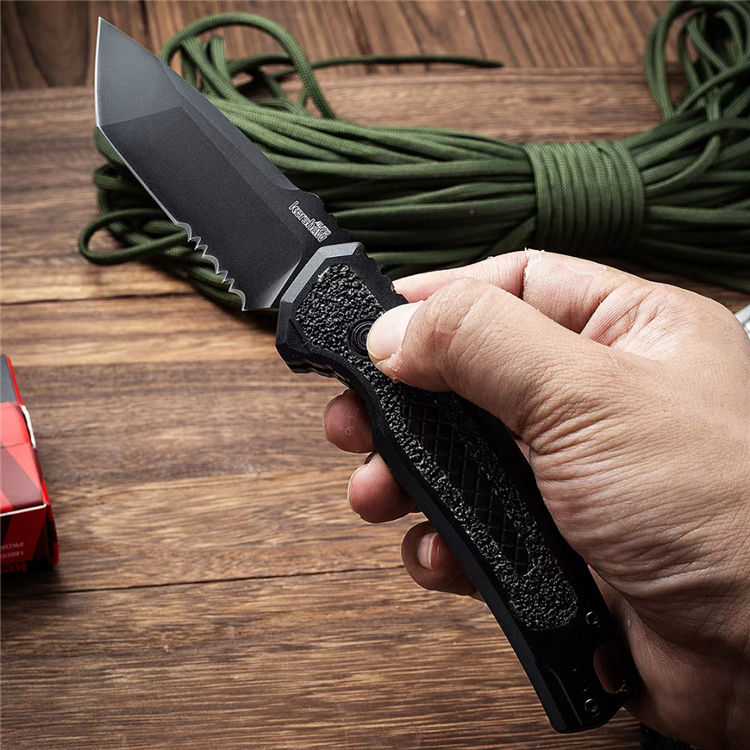 卡秀7105BLK侧开跳刀 全长:21.2CM 刃长:8.5CM 柄长:12.3CM 刃宽:3.0CM 刃厚:0.41CM 刃材:9CR18 柄材:铝合金6061T6 重量:115克(含包装) 附件:说明书,彩盒,整刀用CNC,电脑锣,线切割制作而成,手工,精密度非常高