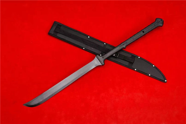 美国联合道具指挥官开山 全长:102cm 刃长:51.8cm 刃宽:6cm 大气磅礴,这款剑似乎可以赋予你力量,带你感受不一样的世界。50厘米长的锋利刀身由1065碳钢制成,表面为黑色硬质涂层。手柄由尼龙纤维制成,非常坚固,尼龙护套和肩带可以轻松携带