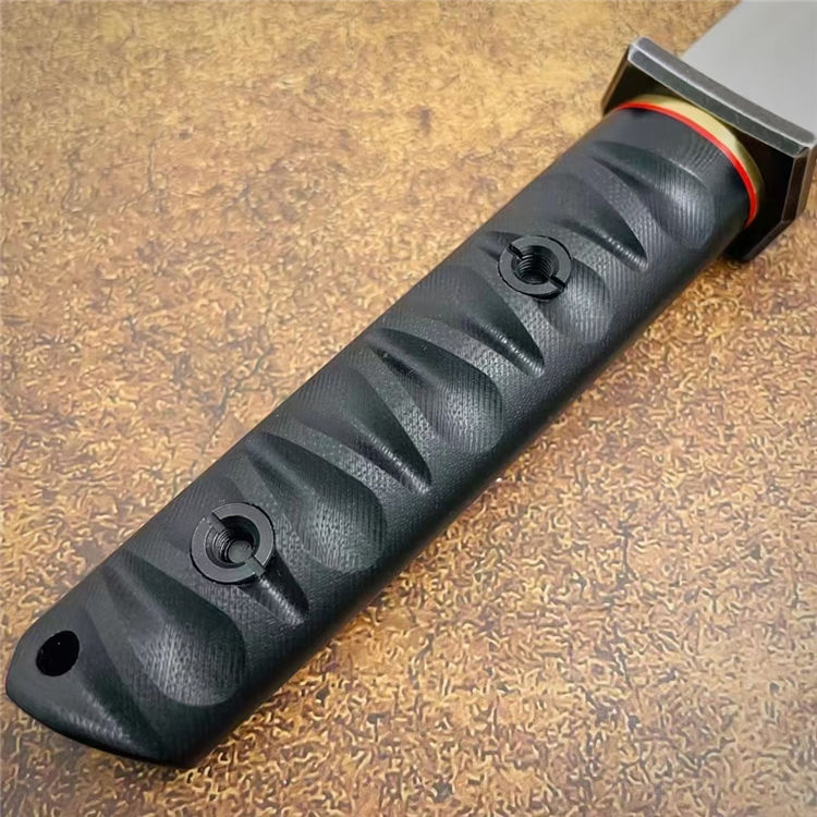 怀桑小武士直刀 全长:29.5cm 刃长:16.5cm 柄长:13cm 刃宽:3cm(最宽处) 刃厚:6mm 刃材:SLD-MAGIC 柄材:G10 硬度:60HRC 重量:348克