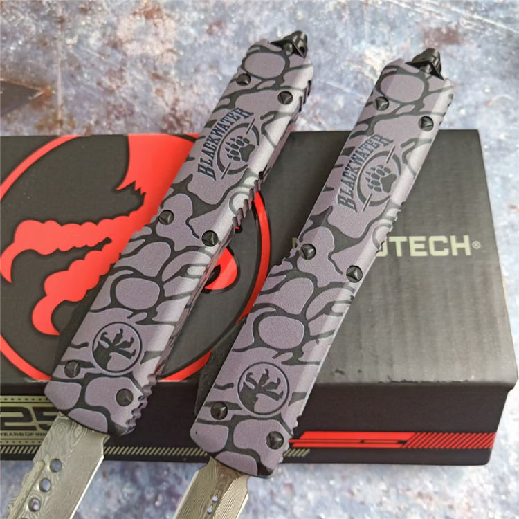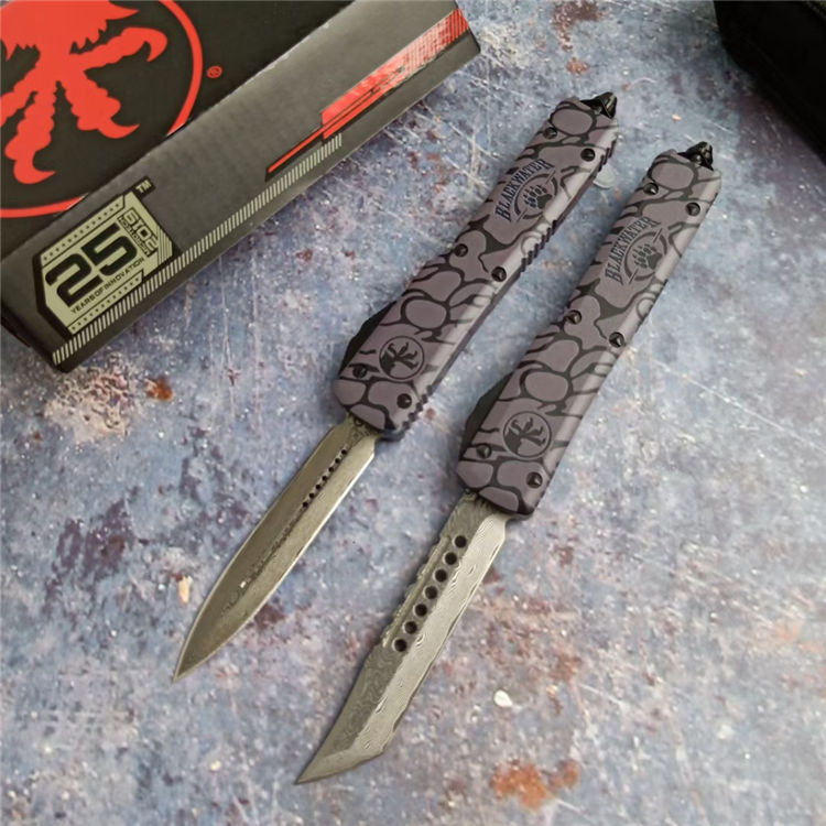 大马士革微技术ELMAX直出跳刀 全长:21.5CM 刃长:8.5CM 柄长:12.5CM 刃宽:1.5CM 刃厚:0.32CM 刃材:vg10大马士革 柄材:铝合金三D打印图案 刀型:直跳 锁定:按钮锁 刀重:97克 重量:164克(含包装) 附件:尼龙套,说明书,彩盒,送拆刀工具