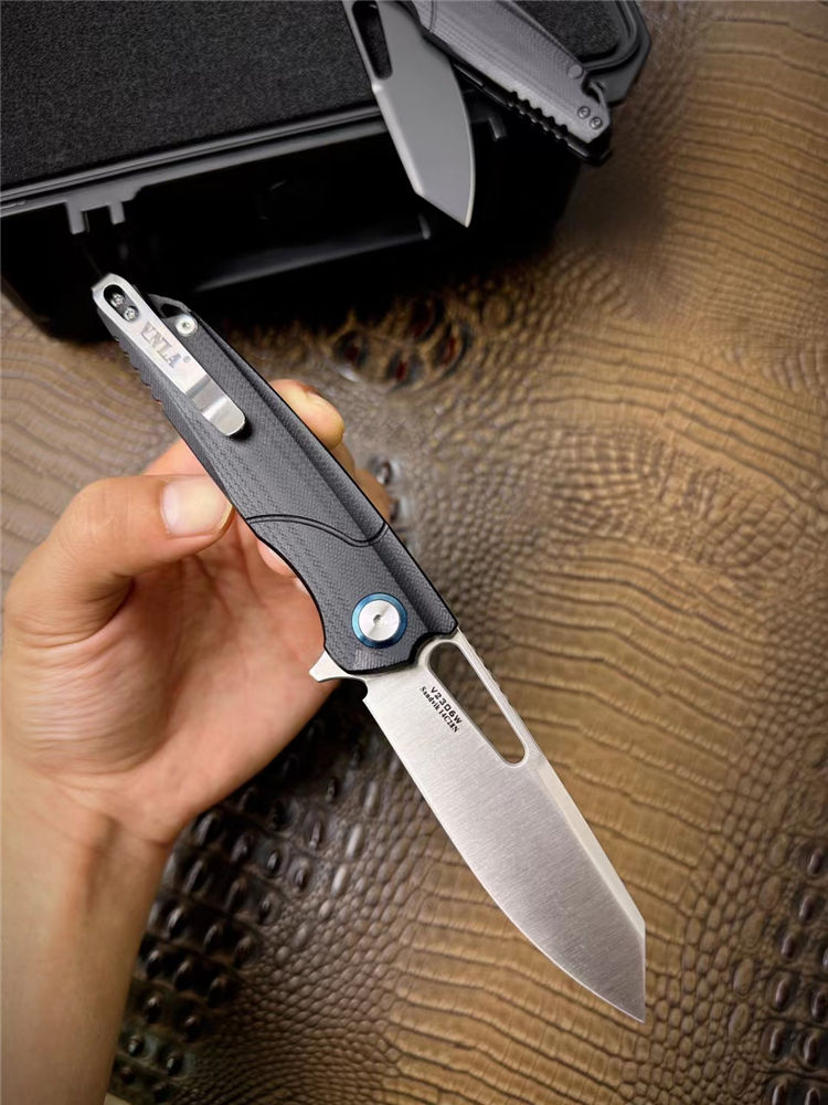 小将兵折刀 总长:185mm 刃长:82.5mm 手柄:103mm 厚度:3.1mm 钢材:山特维克粉末钢14C28N 硬度:60-61HRC 柄材:进口黑G10材质 重量:120g,口袋夹子不锈钢 包装:黑色手工小盒