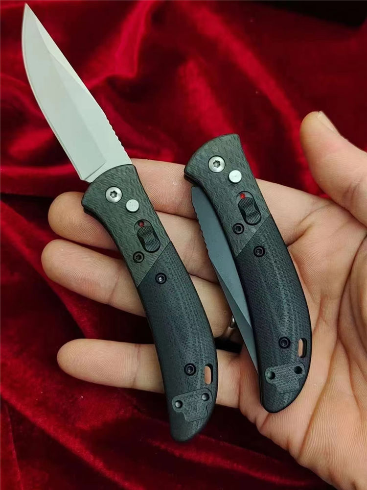 小豺狼侧开跳刀 全长:168mm 刃长:75mm 柄长:95mm 刃厚:2.4mm 刃材:7Cr14Mov高碳钢 硬度:58-59HRC 刀重:68g 毛重:102g 表面:滚珠喷砂镀银钛\黑钛 柄材:G10+碳纤片 锁闭:侧跳弹开 其他:带制锁防误开