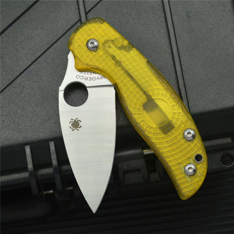 PEI版蜘蛛C123PBK折刀 总长:180mm 刃长:75mm 闭合:105mm 厚度:3.2 mm 材料:9cr18 表面:数控磨砂光钢本色 系统:球轴承系统 柄材:PEI 硬度:58-60HRC 刀重:135克 配置:背衬口袋夹 包装:彩色包装盒