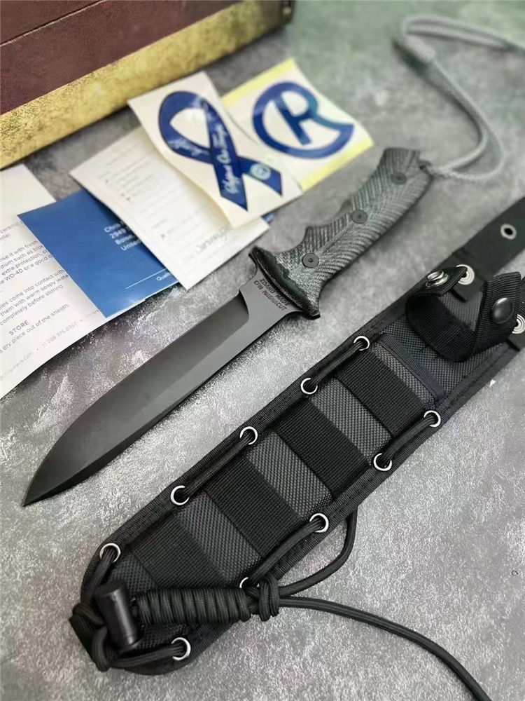 克里斯里夫太平洋7寸绿扁帽直刀 总长:31.5cm 刃长:16.5cm 厚度:0.62cm 硬度:61HRC(深冷处理) 钢材:CPM-magnacut粉末钢神钢 手柄:台湾太空亚麻 表面:灰钛(真空镀钛) 附件:战术尼龙鞘附带全套包装证书,美国迷彩伞绳子(可吊起150公斤重物)