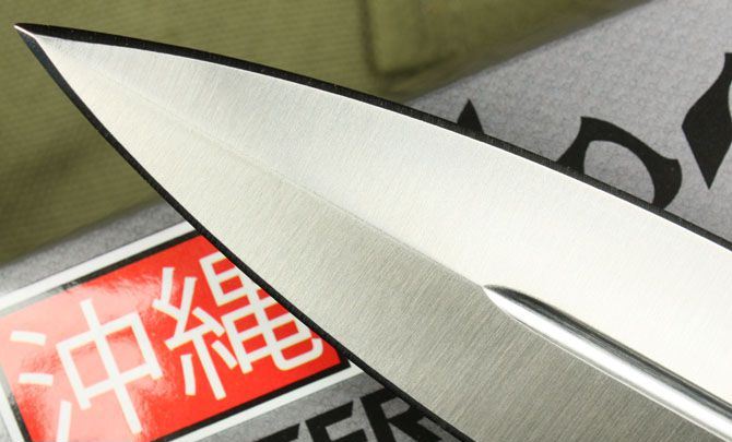 联合刀具UC-冲绳双锋猛将(OEM代工) 全长:33.5cm 刃长:19cm 柄长:14cm 刃厚:4.8mm 刃宽:3.2cm 刃材:5Cr13 柄材:龙骨注塑 硬度:57HRC 净重:320克 毛重:530克(含包装物) 表面处理:钢本色 本产品由UC(联合刀具)公司设计。国内代工出口日本。选料、做工要求严格,手工精细,此刀深受刀友们共赏和收藏。