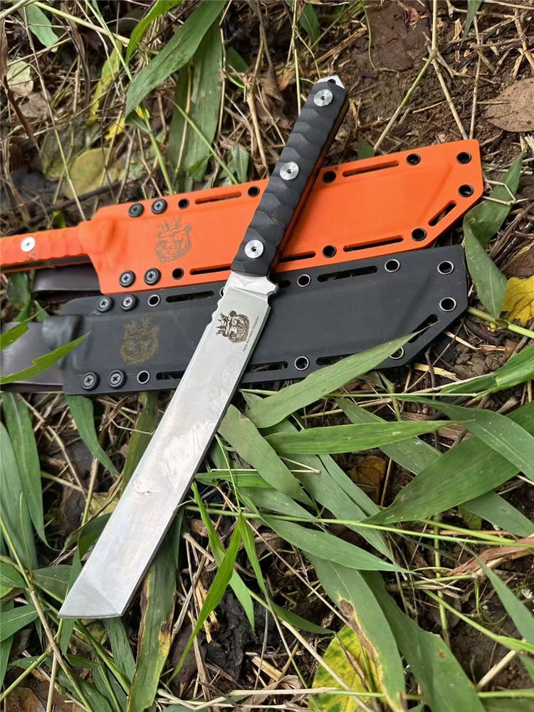 暴力猩猩太空七号直刀 全长:37cm 手柄:14.5cm 刃长:22cm 厚度:0.65cm 宽度:3.5cm(最宽处) 刃材:进口A8钢 柄材:G10复合型纤维 硬度:60-61 HRC(实测硬度) 净重:468克 含鞘:610克 配套:头层牛皮挂件+战术K鞘