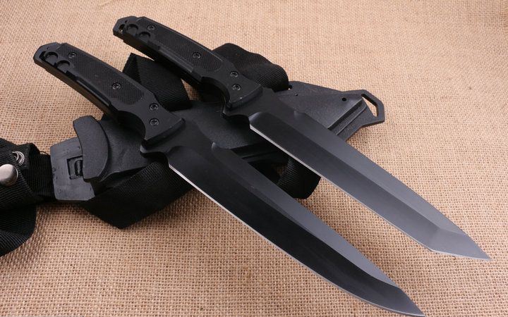 超精仿-戈博1406战术直刀(尖头) 全长:34cm 刃长:20cm 刃厚:6.2mm 刃材:5CR15MOV 刀重:490g 总重:710g 表面:发黑,尖头和平头两款,下单注明 硬度:58-60HRC 柄材:加厚铝材 包装:玻纤刀套