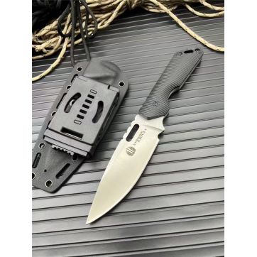 挺进者MK1C直刀 全长:23.5cm 刃长:10.5cm 刃厚:5mm 刃宽:3.4cm 刃材:cr12mov 硬度:58HRC 柄材:黑G10 附件:Kydex鞘 重量:240克(手感做工十分好) 颜色:拉丝