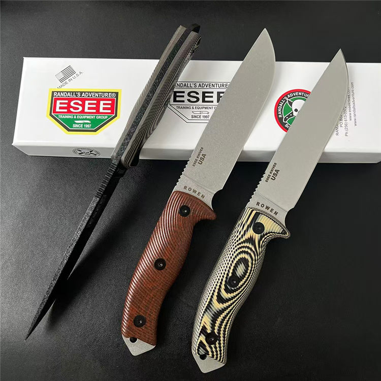 美国ESEE-6直刀 全长:298mm 刃长:160mm 柄长:138mm 刃厚:5mm 柄材:双色G10/亚麻 刃材:1095高碳钢 表面:环氧化物涂层或石洗 硬度:59HRC 净重:442g含刀套 重量:581g(含盒子) 刃套:Kydex鞘 包装:原装彩盒