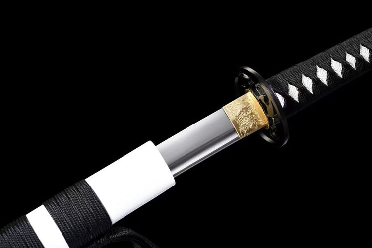 申公豹武士刀 全长:102cm 刃长:73cm 柄长:26cm 刃宽:3.2cm 全重:1.3kg 刃材:中碳钢 鞘材:实木漆鞘彩绘 配精美锦盒