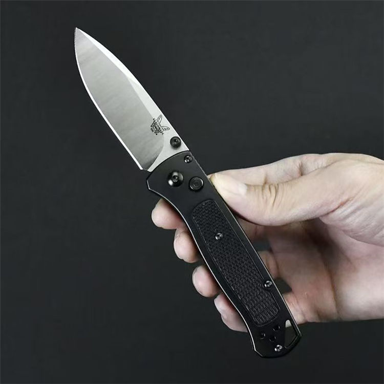 蝴蝶535侧开跳刀 全长:19cm 刃长:7.8cm 柄长:10.8cm 刃宽:2.6cm(最宽处) 刃厚:3mm 柄厚:1.25cm 柄宽:2.8cm 刃材:8Cr13Mov 柄材:航空铝(黑) 刀重:88G 毛量:153G(含包装) 硬度:58±1HRC