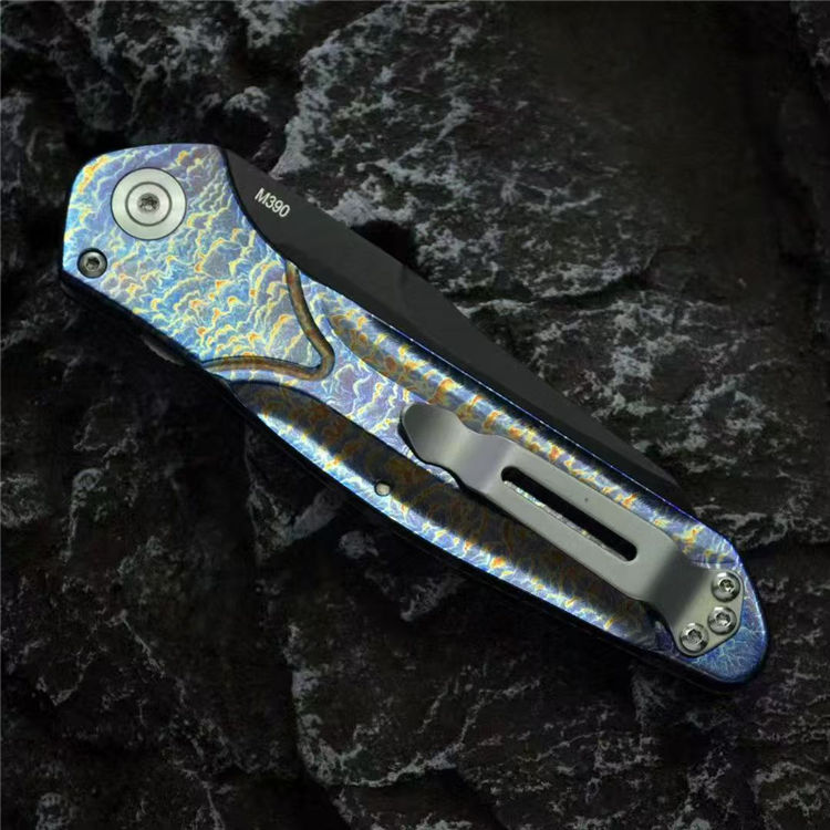 蝴蝶BM9400钛合金雷电纹侧开跳刀