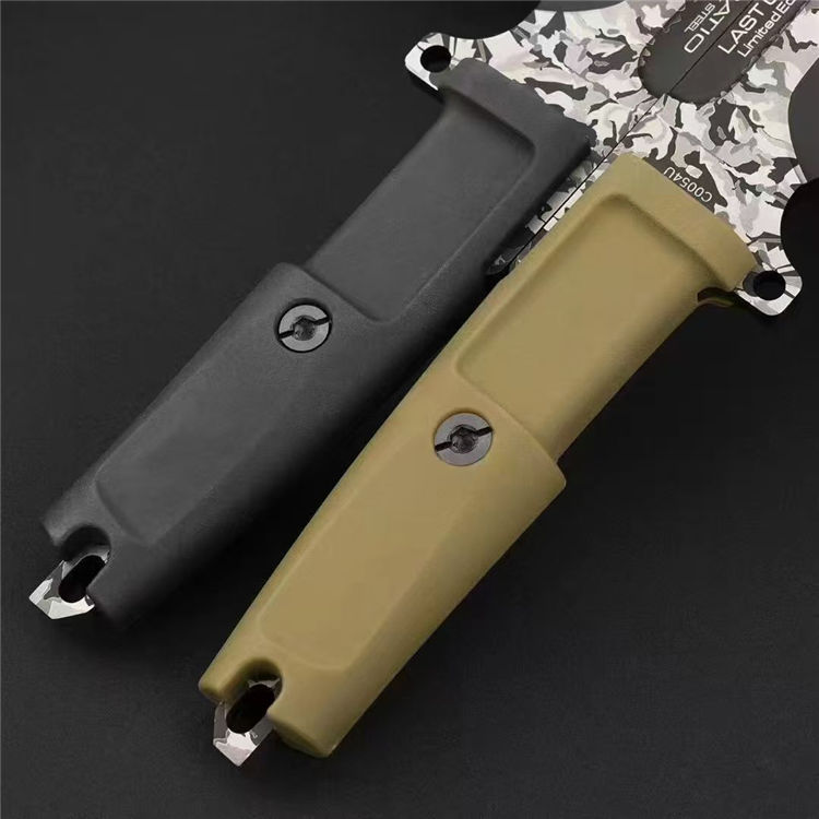 极端武力科尔沃直刀 全长:307mm 刃长:176mm 刃材:N690 硬度:58HRC 表面:mil-c-13924打磨刀片黑色涂层+3D无痕激光迷彩涂层 刃厚:6.3mm 柄材:FORPRENE 重量:62g 刀鞘:MOLLE系统高级尼龙织带 附件:附带一副卡其色手柄+六角螺丝