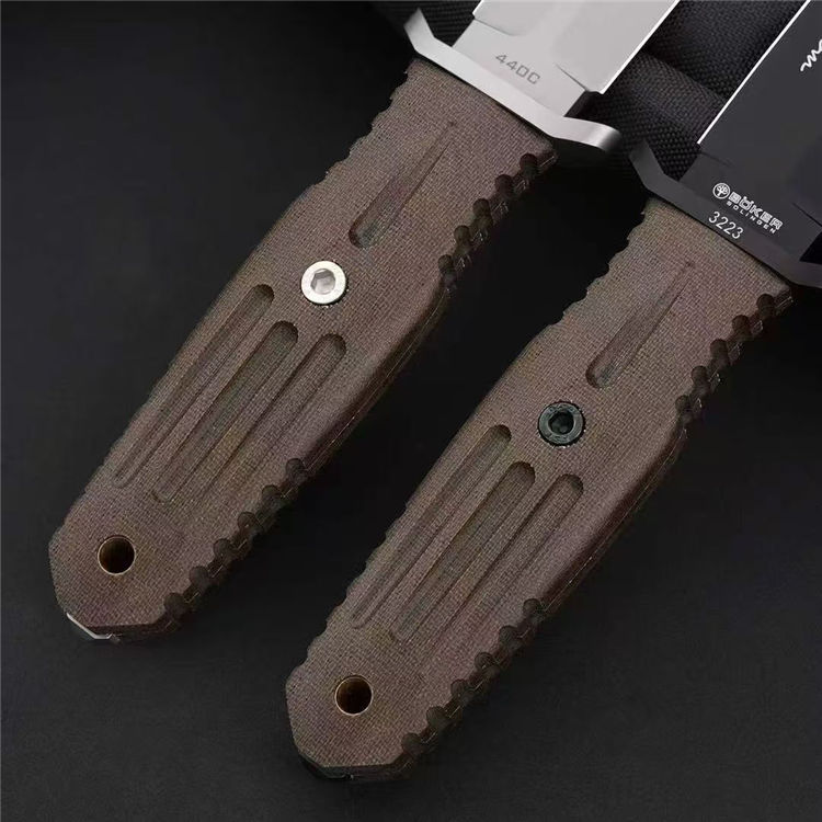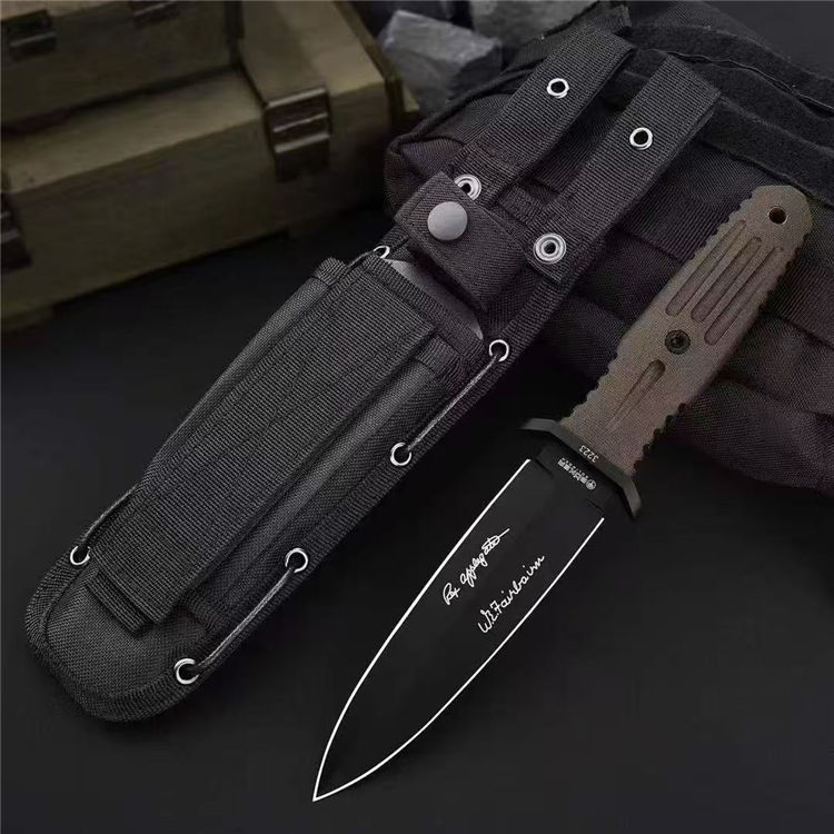 博克阿普盖特军版直刀 总长:27cm 刃长:14.5cm 柄长:12.4cm 刃宽:3.5cm 刃厚:5mm 刃材:440C 柄材:米卡塔 硬度:59-61HRC 重量:357g(含套) 工艺:CNC电脑锣精密加工制作