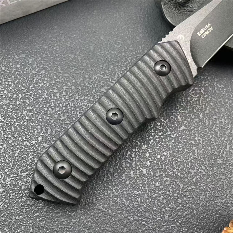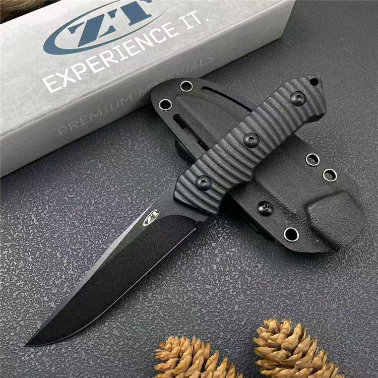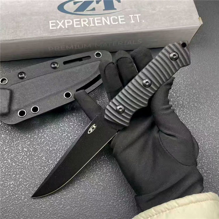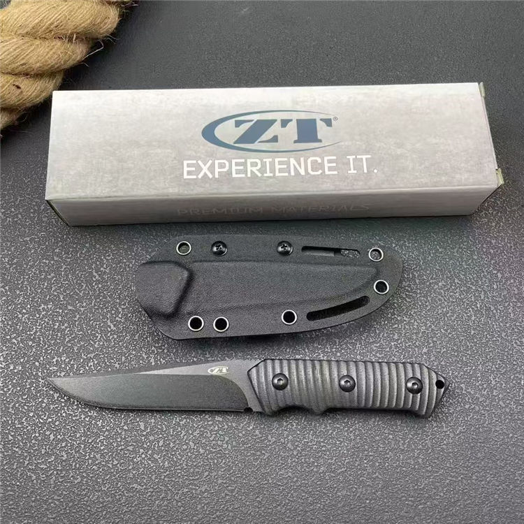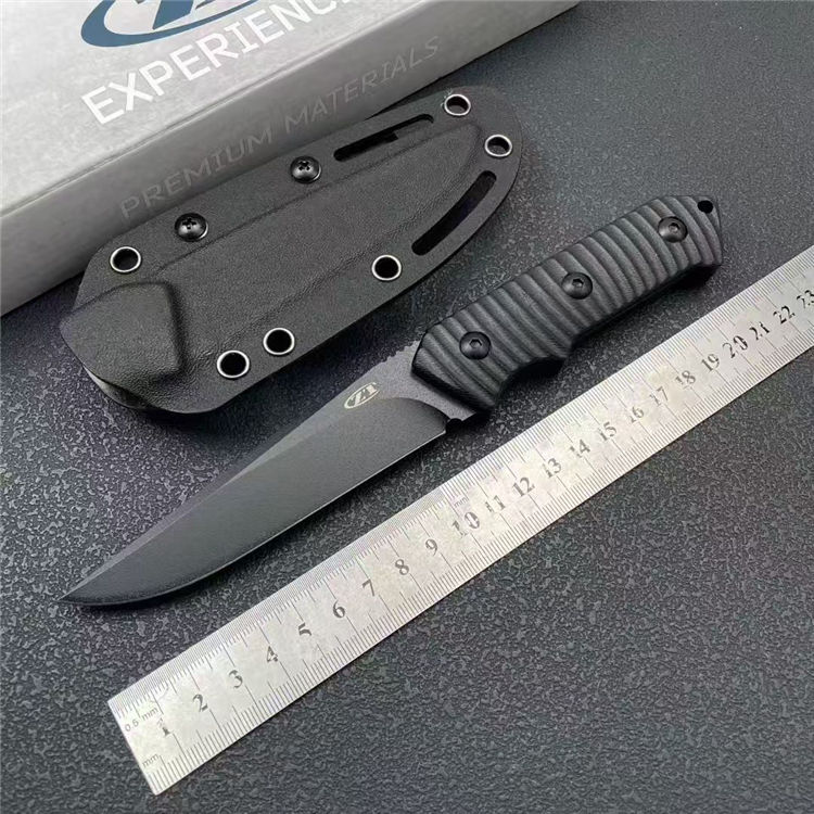 零误差ZT1018直刀 全长:22cm 刃宽:2.7cm 刃长:10.8cm 柄长:11cm 刃厚:4mm 刃材:CPM3V 柄材:一体钢+G10 刀重:180G/247G(含K梢) 毛量:288G 硬度:59-60HRC