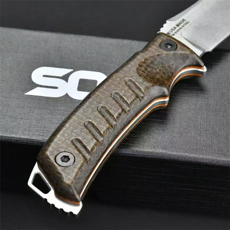 SOG索格亚麻直刀 全长:20.5cm 刃长:9.2cm 柄长:10.7cm 刃宽:2.8cm(最宽处) 刃厚:3.5mm 柄厚:1.6cm 柄宽:3cm 刃材:9Cr18Mov 柄材:G10 刀重:117G/181G(含鞘) 毛量:274G(含包装) 硬度:58±1HRC